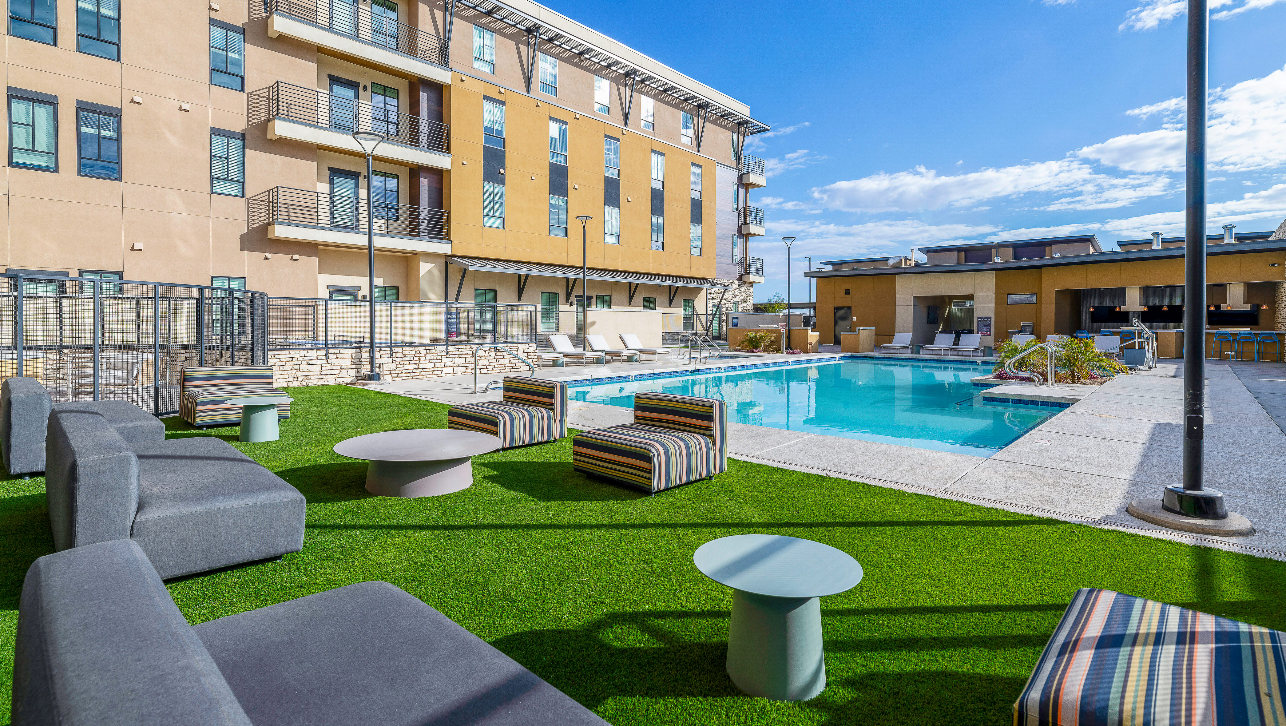 Discover modern comfort and elevated living at Solace at Ballpark Village in Goodyear. From a 24-hour fitness center, outdoor yoga lawn, and dog park to a resort-style pool, spa, and cabanas, every detail is crafted for your relaxation and enjoyment. Experience the perfect balance of luxury, convenience, and connection in the heart of Goodyear.